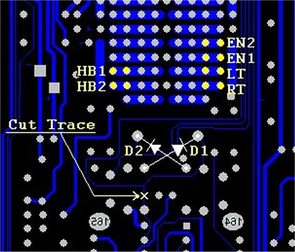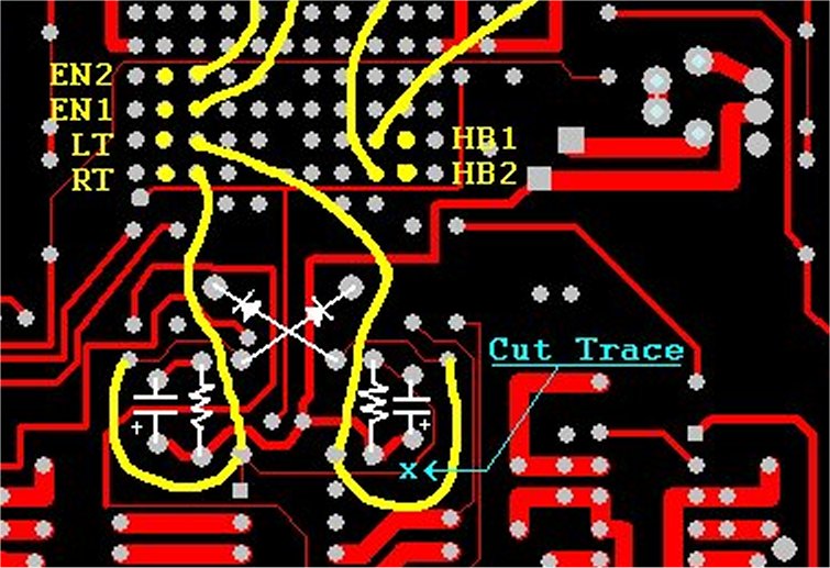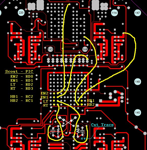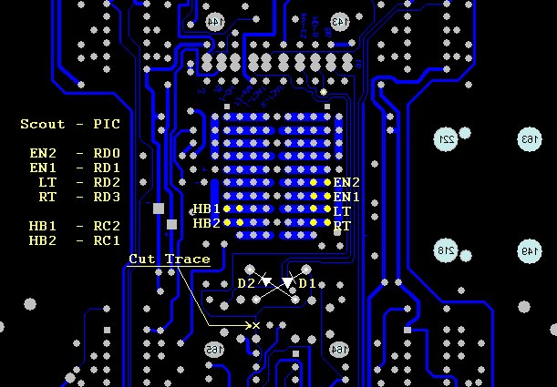 1. We need to cut two traces on the Scout II Walker circuit board. Please refer to