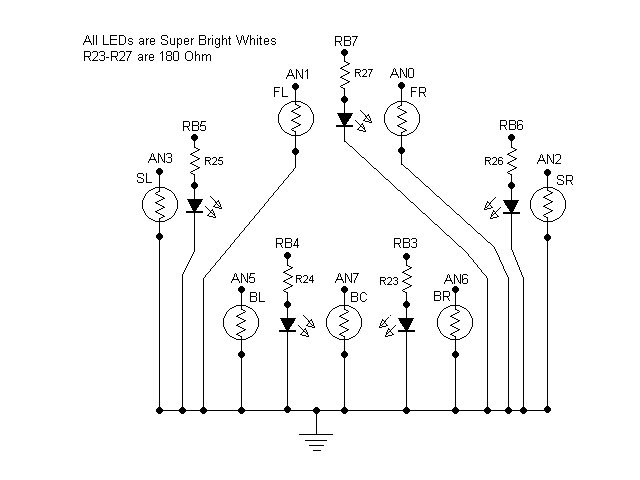 binzone5.c - Is the Line Following code.This code is supplied as is, do want you want with it.bin_cal.c - Is a program I use to calibrate the line following circuit. It prints out the converted analog values to the HyperTerminal screen via the serial connection and loops on one cds element until you are happy with the trimpot settings. The program loops continously until you turn off the PIC.